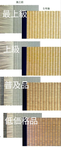 畳に使われるイ草は、敷いた直後はどれも青くきれいに見えますが、月日が経つと色の変化や耐久性に差が出てきます。